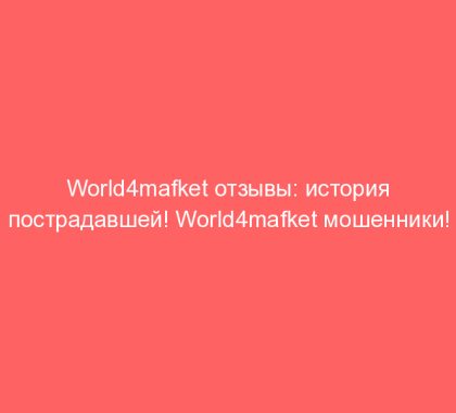 World4mafket отзывы: история пострадавшей! World4mafket мошенники! Пострадавашя Ксения попросила опубликовать ее историю о World4mafket: World4mafket – очень страшный мошенник, разговор вёл сильный психолог, звонят и навязываются, я потеряла всё! Сначала делаешь депозит, через всякие ссылки заставляет это делать! Потом – плата за автоконвертацию валют! И ты превращаешься в какого-то барана, отдаешь всё, тянешь кредиты, как полоумный. Не[…]