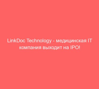 LinkDoc Technology – медицинская IT компания выходит на IPO! LinkDoc Technology Limited работает как поставщик решений для медицинских данных и услуг по обработке больших данных в онкологии. Компания предоставляет интеграцию больших медицинских данных, интеллектуальную диагностику медицинских изображений, медицинские исследования и другие услуги. LinkDoc Technology обслуживает медицинские учреждения и фармацевтические компании в Китае. LinkCare Platform – это ориентированная на пациента цифровая[…]