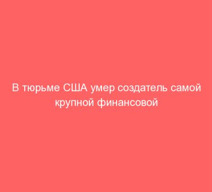 В тюрьме США умер создатель самой крупной финансовой пирамиды – Бернард Мейдофф! В тюрьме штата Северная Каролина (США) на 83-м году жизни скончался организатор одной из крупнейших в истории финансовых пирамид Бернард Мейдофф. Об этом в среду, 14 апреля, пишет Associated Press. По данным источника агентства, смерть наступила по естественным причинам. Мейдоффа арестовали в декабре 2008 года. Спустя […]