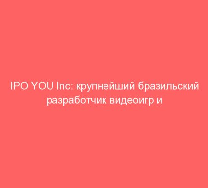 IPO YOU Inc: крупнейший бразильский разработчик видеоигр и программного обеспечения проведет размещение на NYSE! YOU Inc – является крупнейшей IT компанией в Бразилии! 05.08.2020 компания проведет IPO( первичное публичное размещение) на фондовой бирже NYSE! В отличии от многих “стратапов” на это IPO следует обратить внимание хотя бы по той причине, что компания имеет устойчивую бизнес модель, которая[…]
