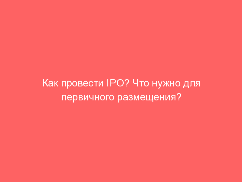 Как провести IPO? Что нужно для первичного размещения?