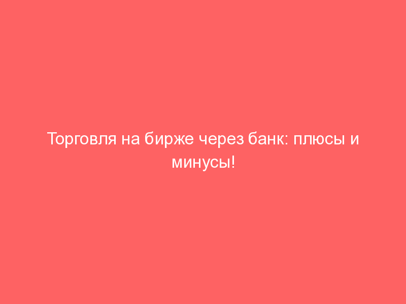 Торговля на бирже через банк: плюсы и минусы! Объективные плюсы и минусы торговли через банк! Биржевая торговля через банк: насколько это выгодно и стоит ли игра свеч?