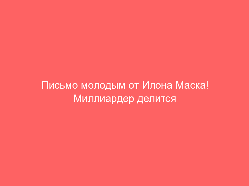 Письмо молодым от Илона Маска! Миллиардер делится образом мышления!