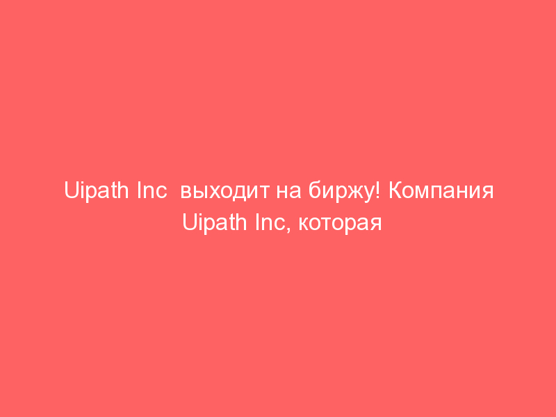 Uipath Inc выходит на биржу! Компания Uipath Inc, которая занимается производством роботов проведет IPO уже на этой неделе!