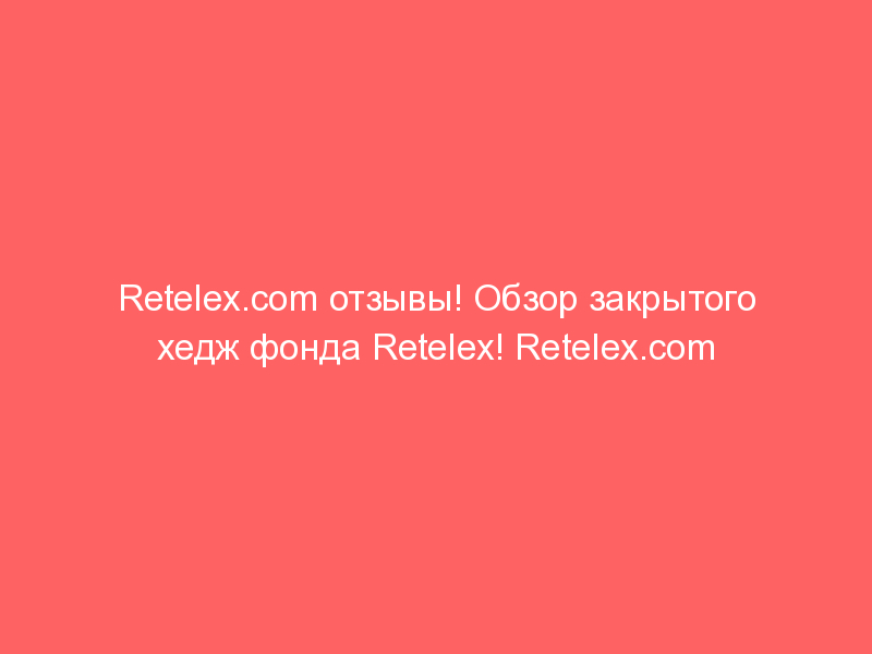 Retelex.com отзывы! Обзор закрытого хедж фонда Retelex! Retelex.com мошенники или можно работать без страха?