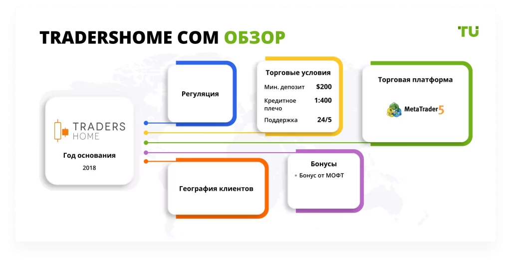 Компания tradershome впервые заявила о себе в 2018 году, и сегодня является популярной среди различных сообществ. Брокер открывает большое количество возможностей для финансовых вложений: от золота до акций, монет и различных валют. Активируются балансы с помощью MetaTrader 5, где КП составляет 1 к 400, что достаточно неплохо на первый взгляд.