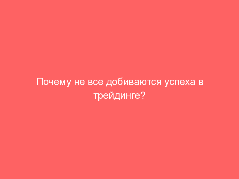 И действительно, вопрос хороший. Ответить на него можно по разному. Так почему не все добиваются успеха в трейдинге?